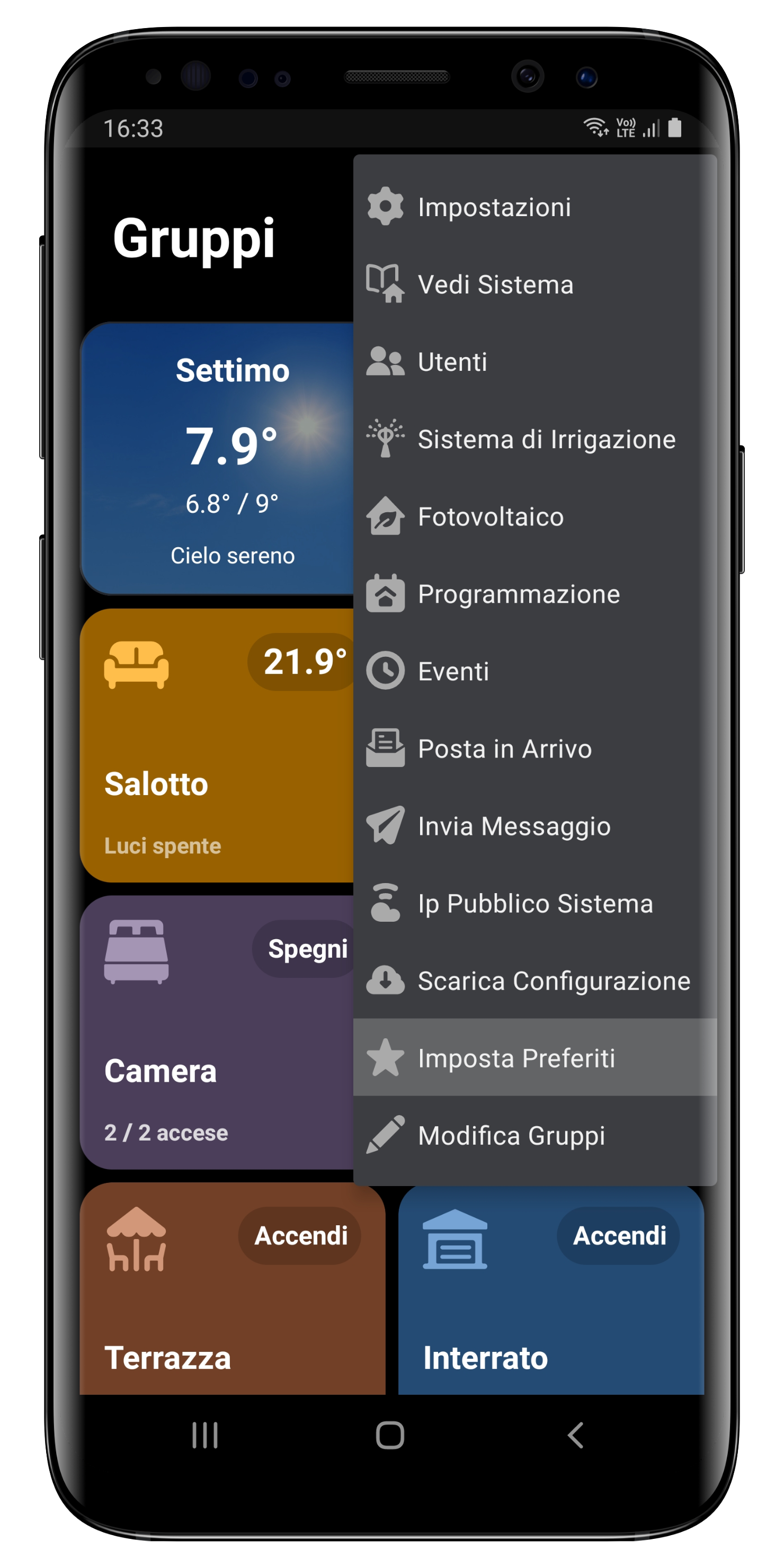 Per aggiungere le scorciatoie più usate alla Home è sufficiente cliccare sui tre puntini in alto a destra, quindi Imposta Preferiti.
