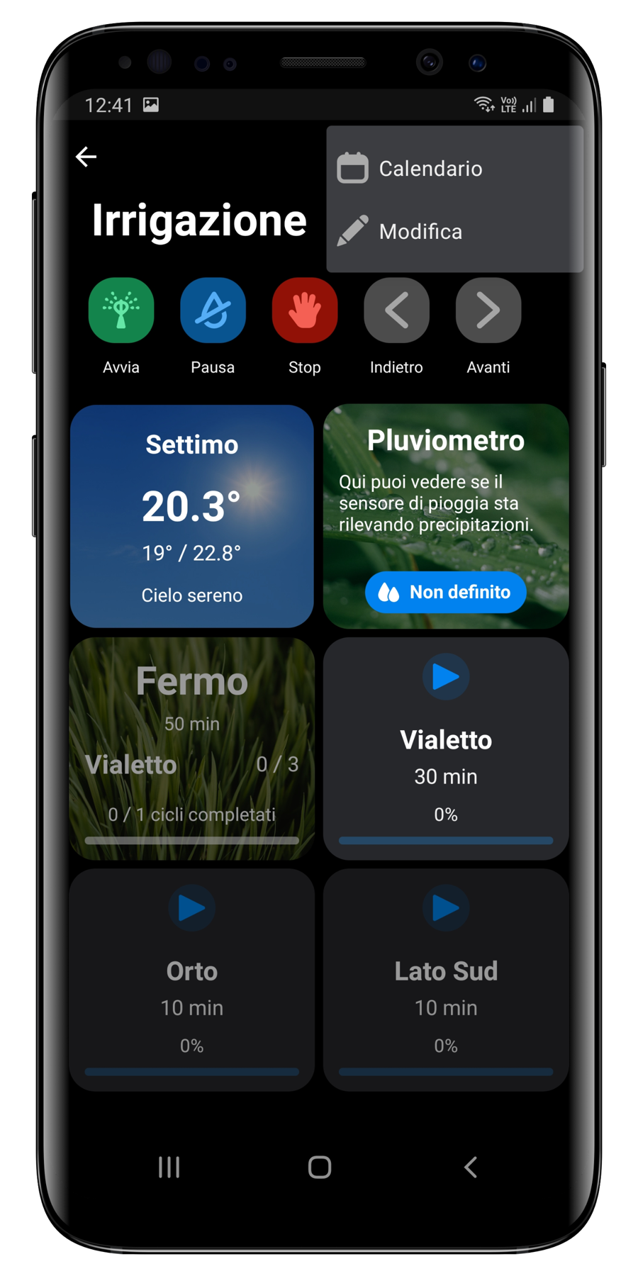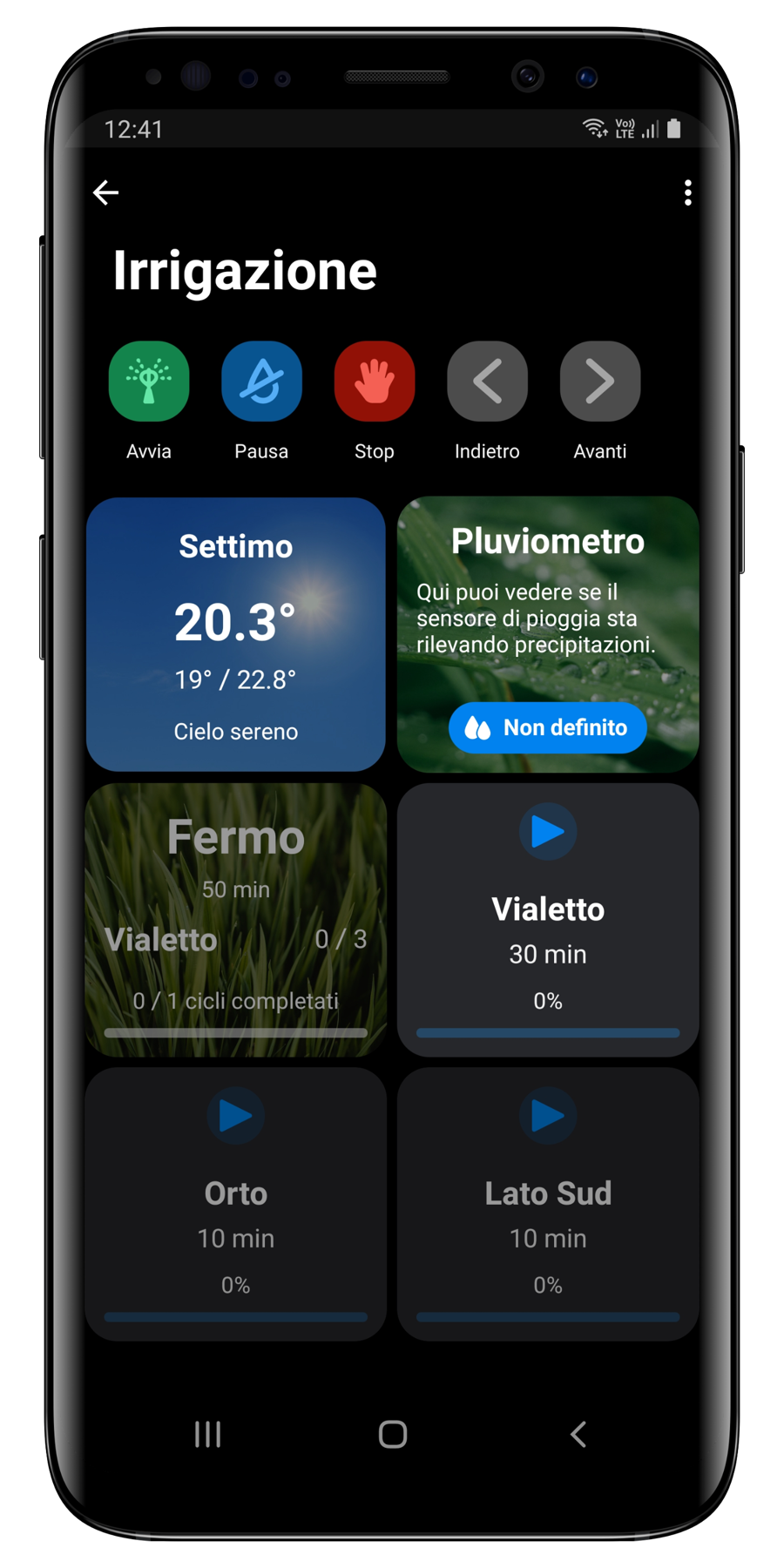 Quando parliamo di zone o fasi, intendiamo fondamentalmente la stessa cosa. Ogni zona del giardino è associata a una specifica fase del ciclo di irrigazione. È sulle fasi che avete la possibilità di intervenire per gestire il sistema.