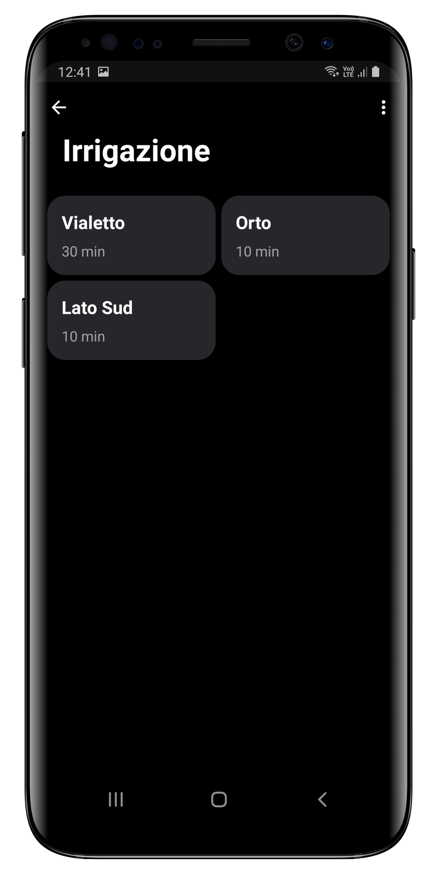 Per accedere al Sistema di Irrigazione è sufficiente premere i tre puntini in alto a destra, quindi il tasto Irrigazione.