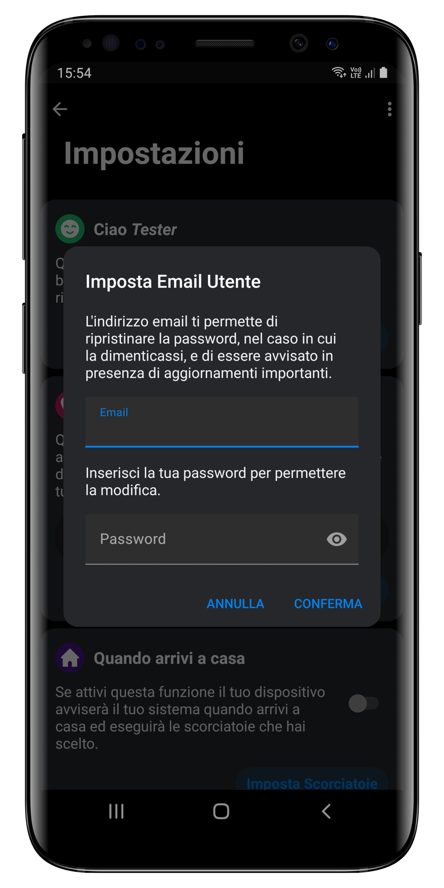 Nel caso non ricordassi più la password, puoi richiedere un ripristino accedendo alle impostazioni dell'app utente.