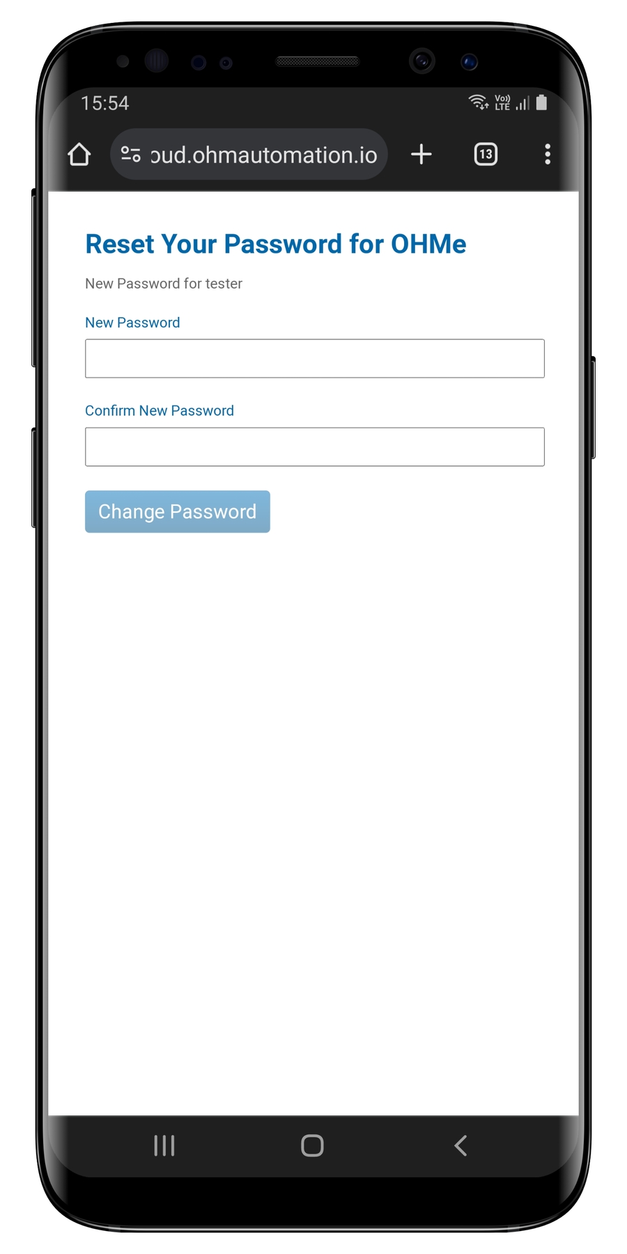 Si aprirà automaticamente una finestra sul tuo browser predefinito. Ti verrà quindi richiesto di scrivere due volte la nuova password (la seconda volta per conferma).