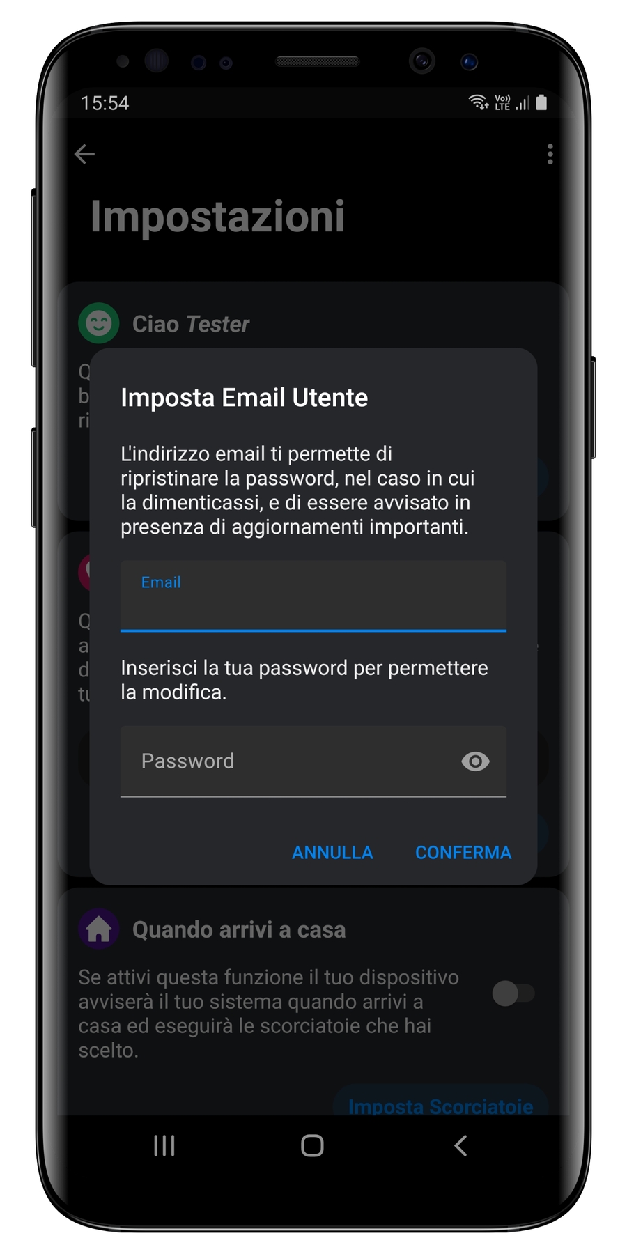 Nel caso non ricordassi più la password, puoi richiedere un ripristino accedendo alle impostazioni dell'app utente.
