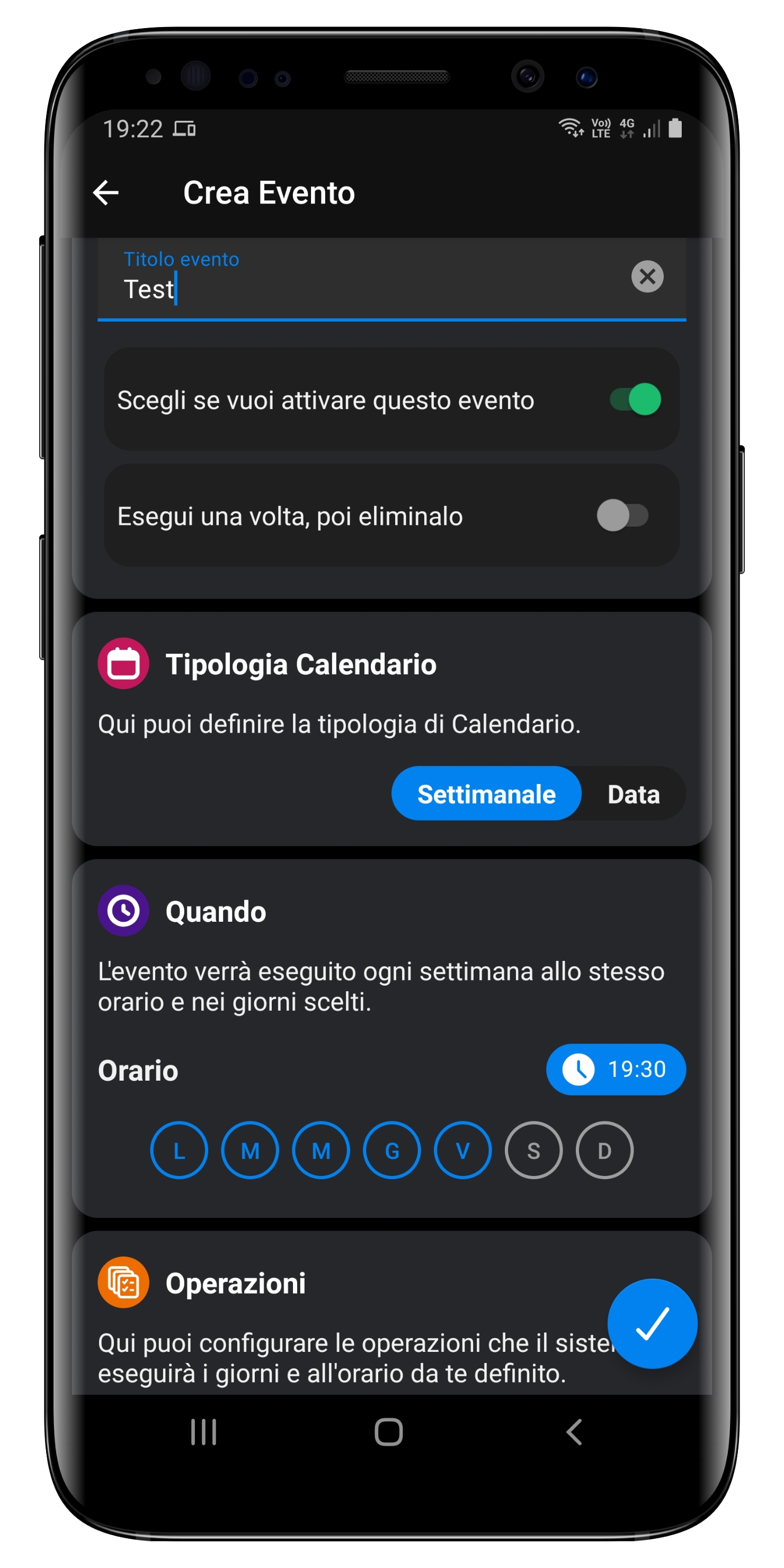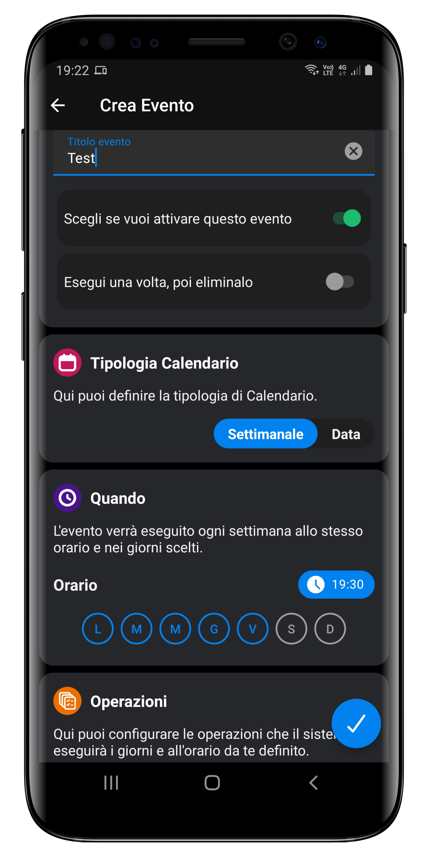 Potete definire l'orario di esecuzione e i giorni della settimana per i quali volete che sia valida la programmazione; cliccate su Imposta Operazioni per definire la lista di operazioni che desiderate (potete definirne quante ne volete).