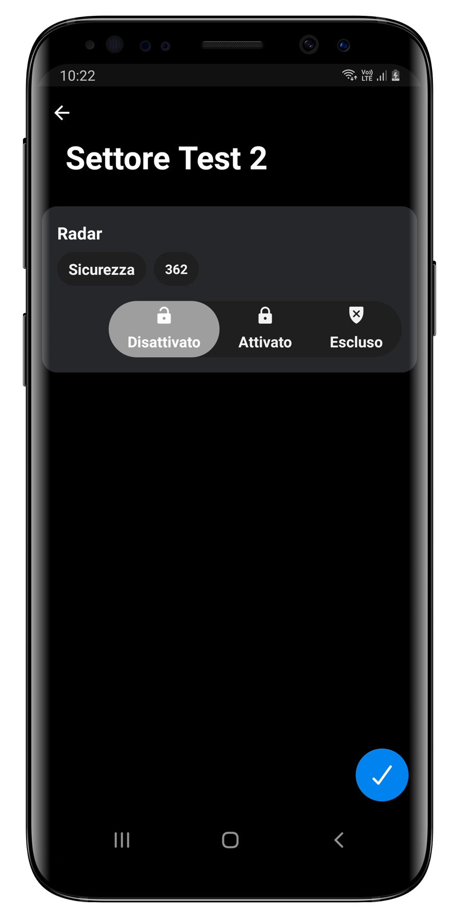 Premendo su una delle tre opzioni (disattivato, attivato o escluso) potete impostare la modalità di funzionamento di ogni singolo sensore. Per salvare premete il tasto blu in basso a destra.