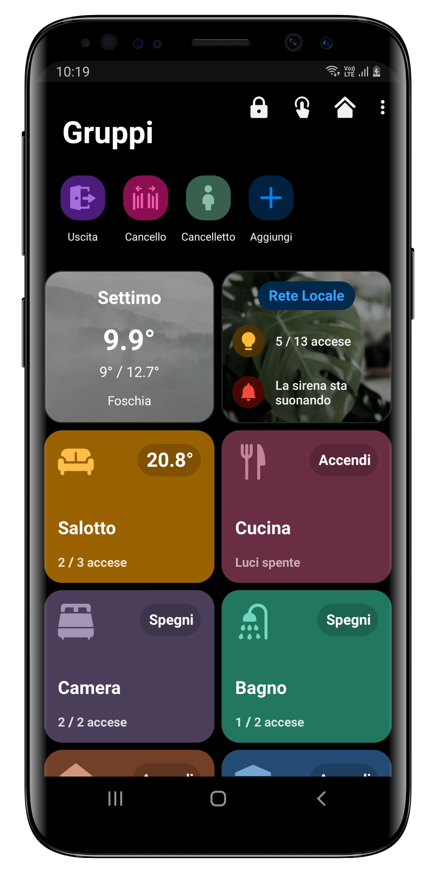 L'app è stata progettata per permetterti di attivare e disattivare il Sistema di Allarme il più velocemente possibile, ecco perché nella schermata principale trovi bene in vista il lucchetto che ti segnala se è attivo o meno.