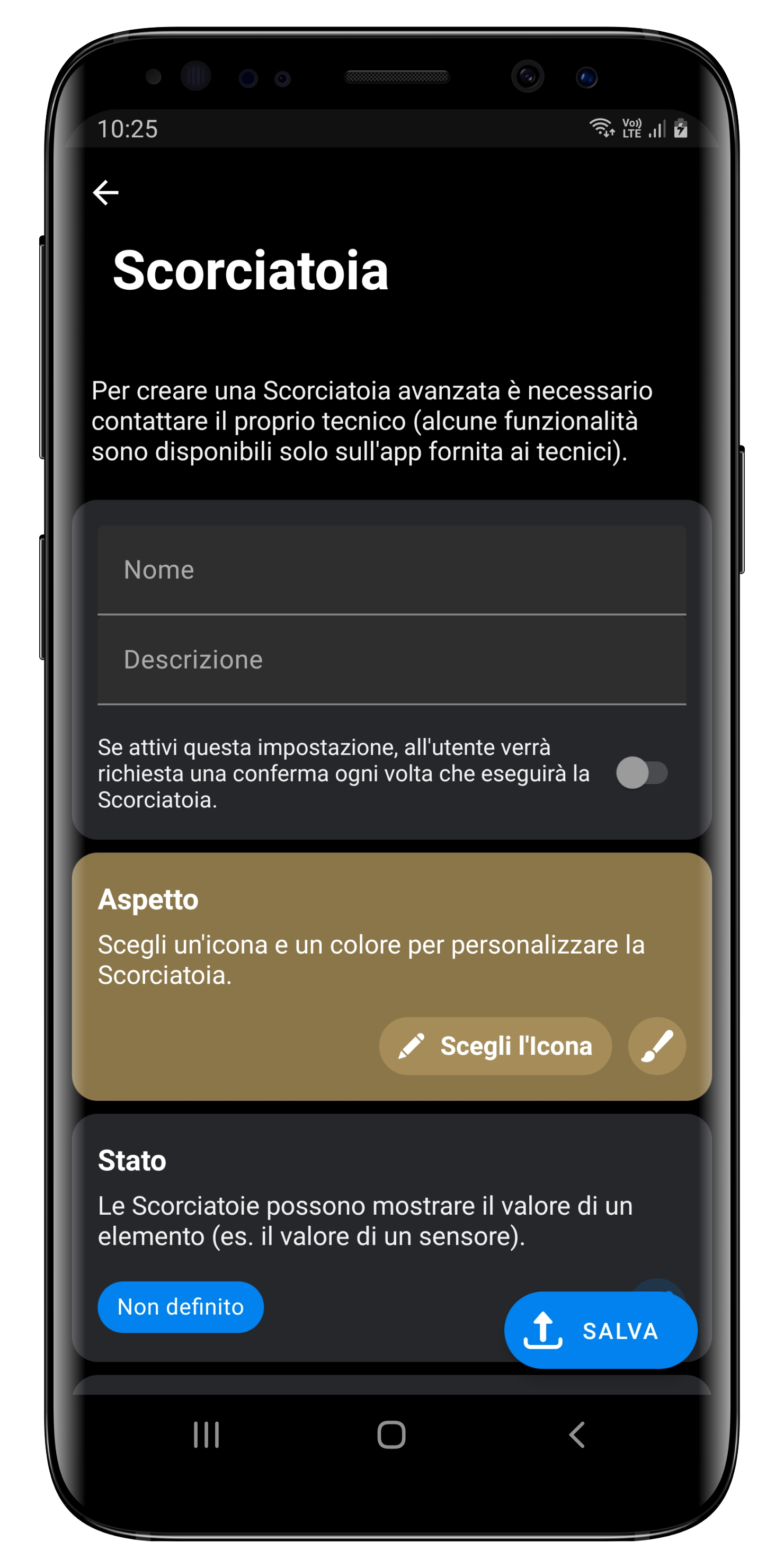 Le Scorciatoie create dal tuo tecnico sono legate al sistema e quindi non possono essere modificate (puoi comunque nasconderle), ma accedendo alla pagina dedicata, puoi aggiungerne di nuove.
