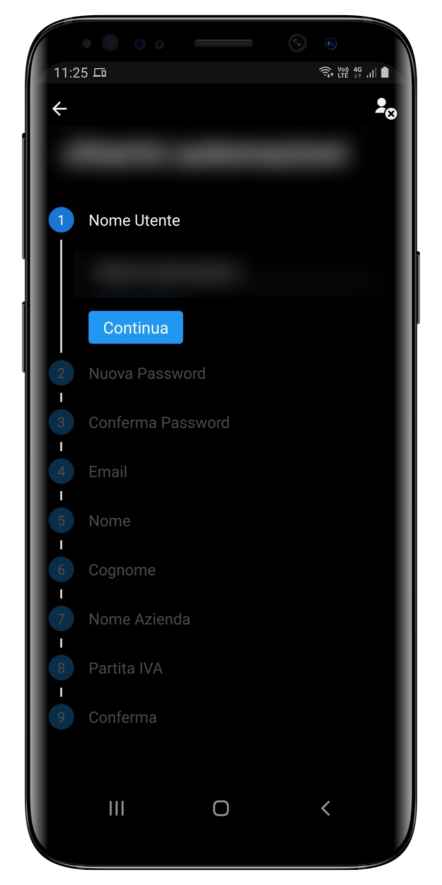 Per richiedere l'eliminazione dall'app è necessario accedere alle impostazioni dell'utente tecnico, premendo il pulsante con un pennino sulla prima casella.