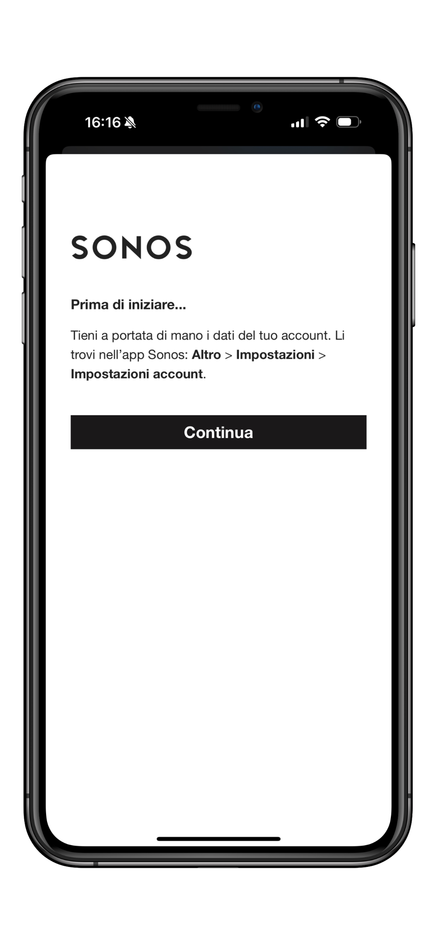 Clicca sul tasto Continua, quindi inserisci le credenziali del tuo account Sonos.