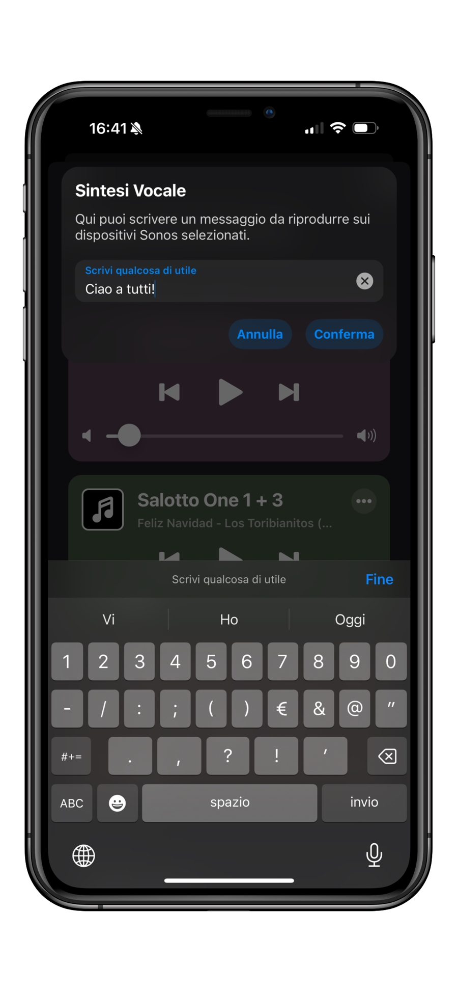 Grazie all'integrazione della sintesi vocale sarai in grado di tramutare messaggi di testo in messaggi vocali che verranno riprodotti dai Player Sonos che deciderai di selezionare.