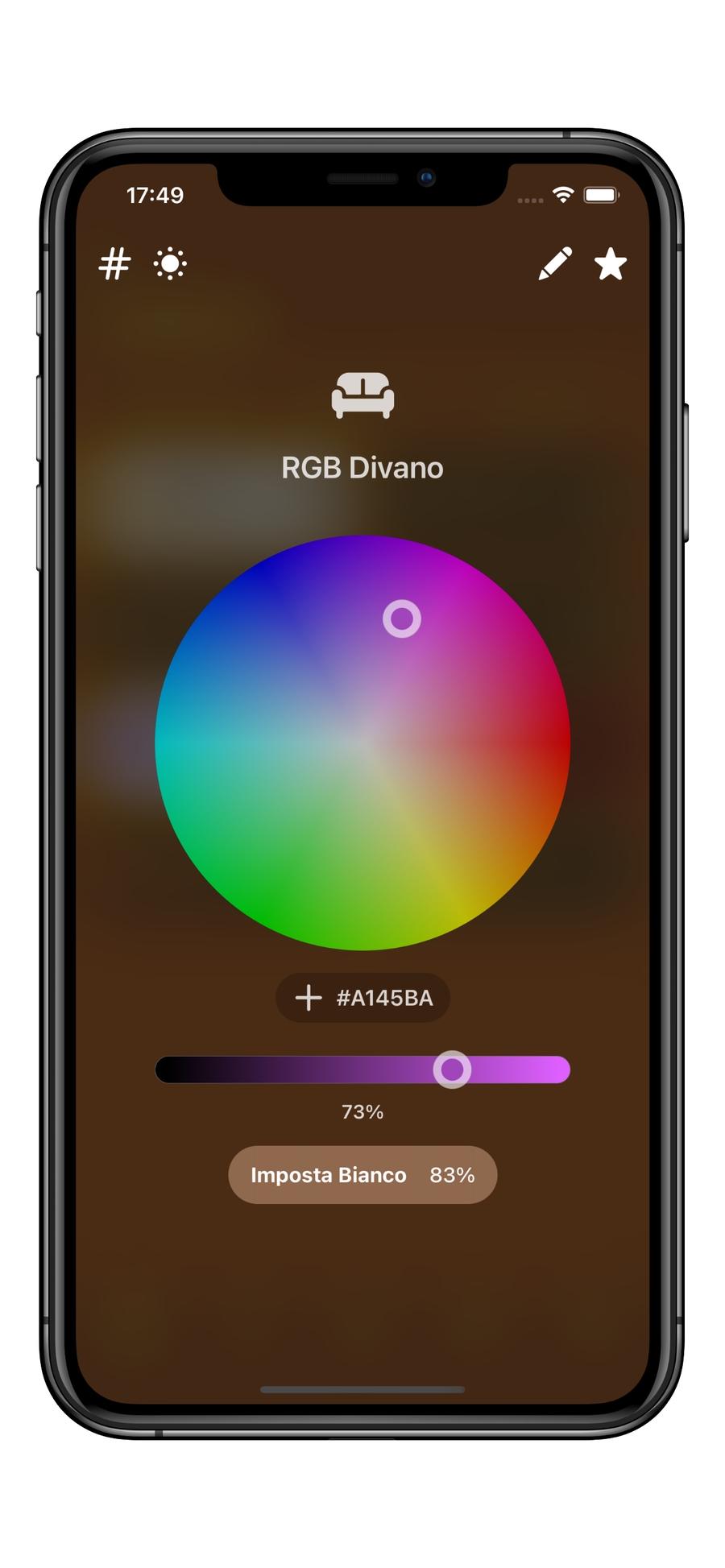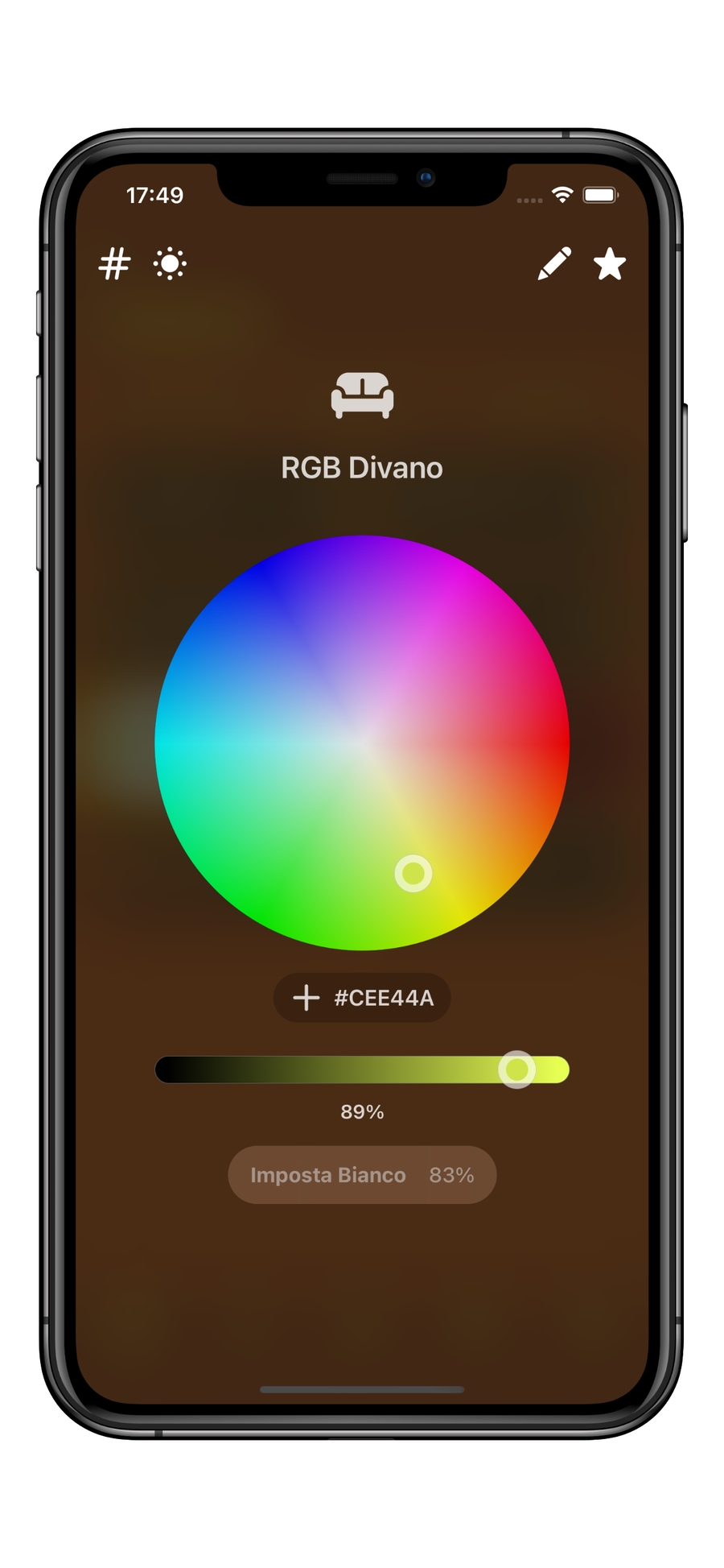 Just like with dimmable lights, RGB lights require only a tap to turn on/off, while a long press is needed to adjust the color.
