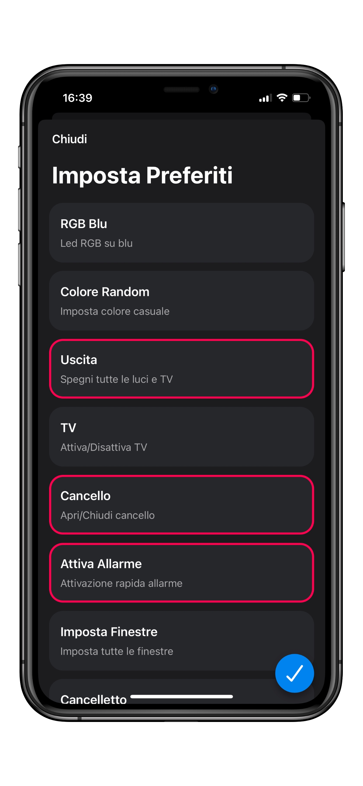 Si aprirà una pagina che ti permetterà di scegliere le Scorciatoie da aggiungere come preferiti, quindi clicca il tasto in basso a destra per confermare.