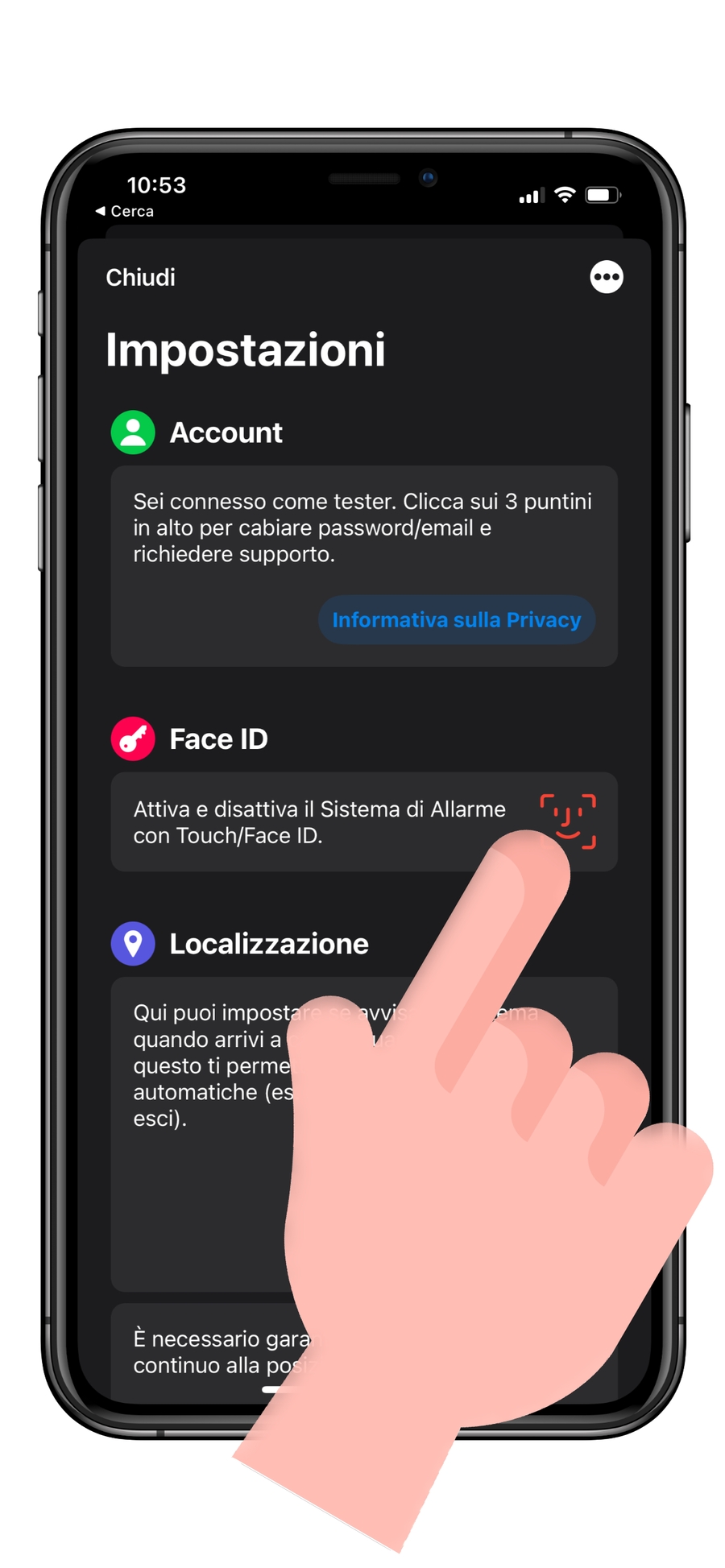 Per poter attivare la seguente funzione è necessario che il controllo biometrico sia stato attivato sul vostro dispositivo.