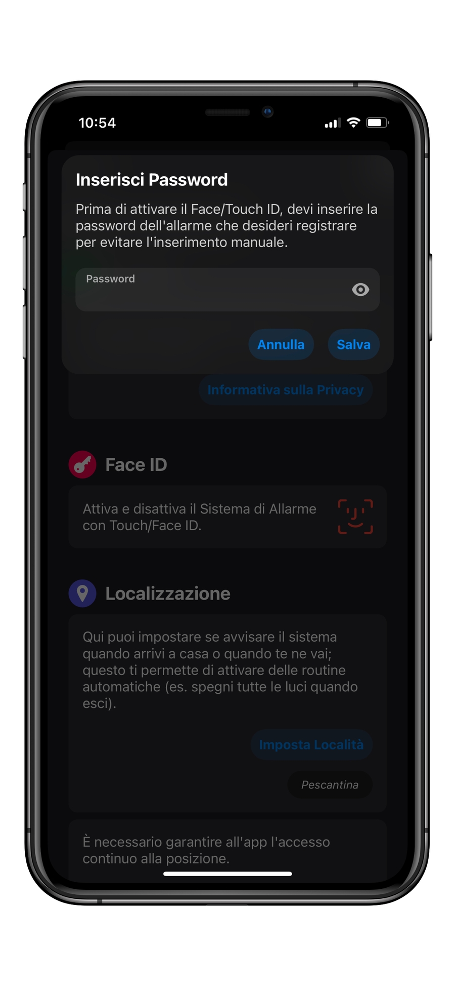 Per velocizzare ulteriormente le operazioni sul sistema di allarme è possibile attivare il controllo biometrico (sia facciale che impronta), così da evitare l'immissione della password.