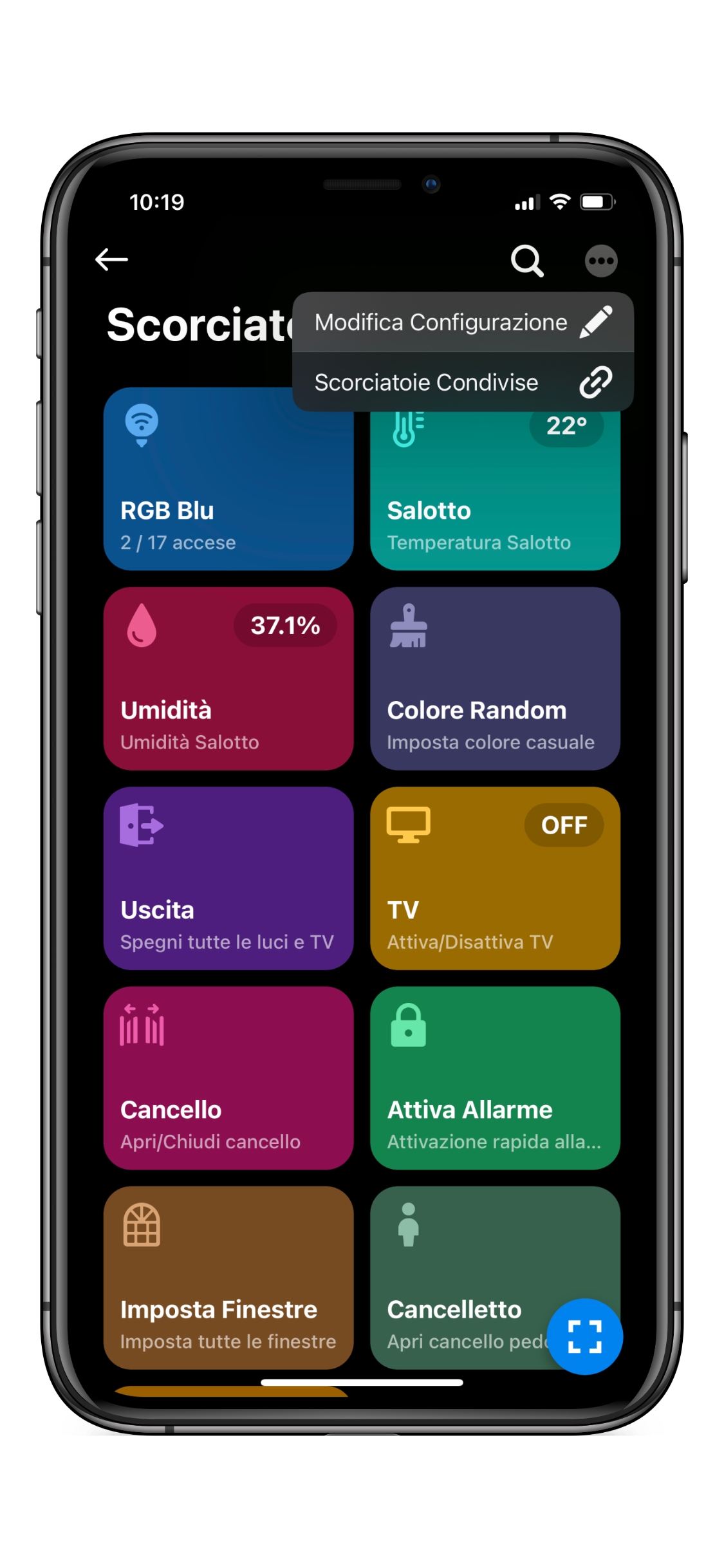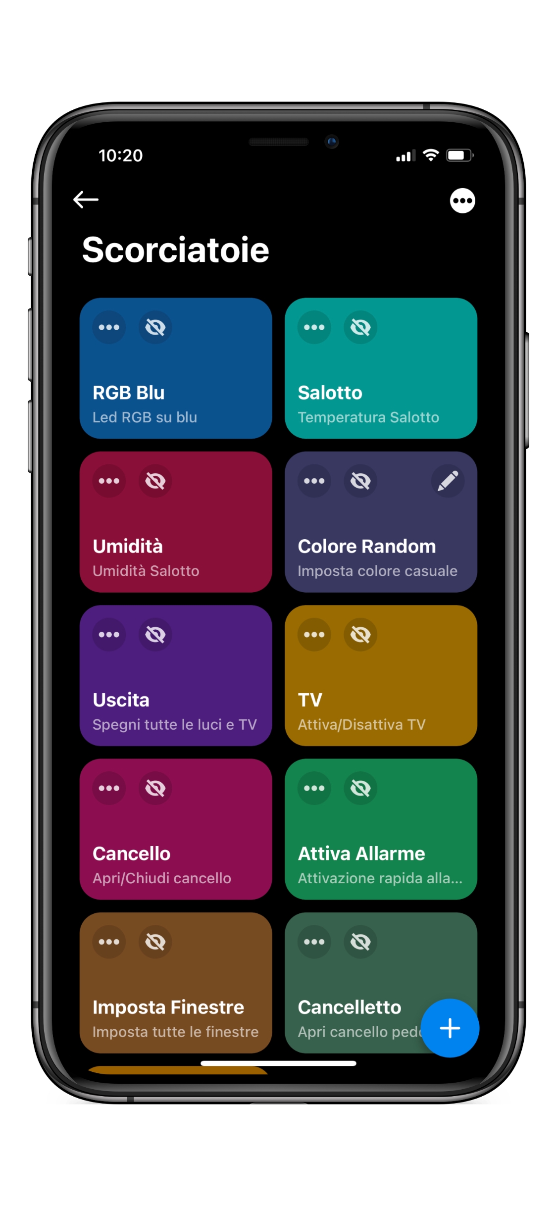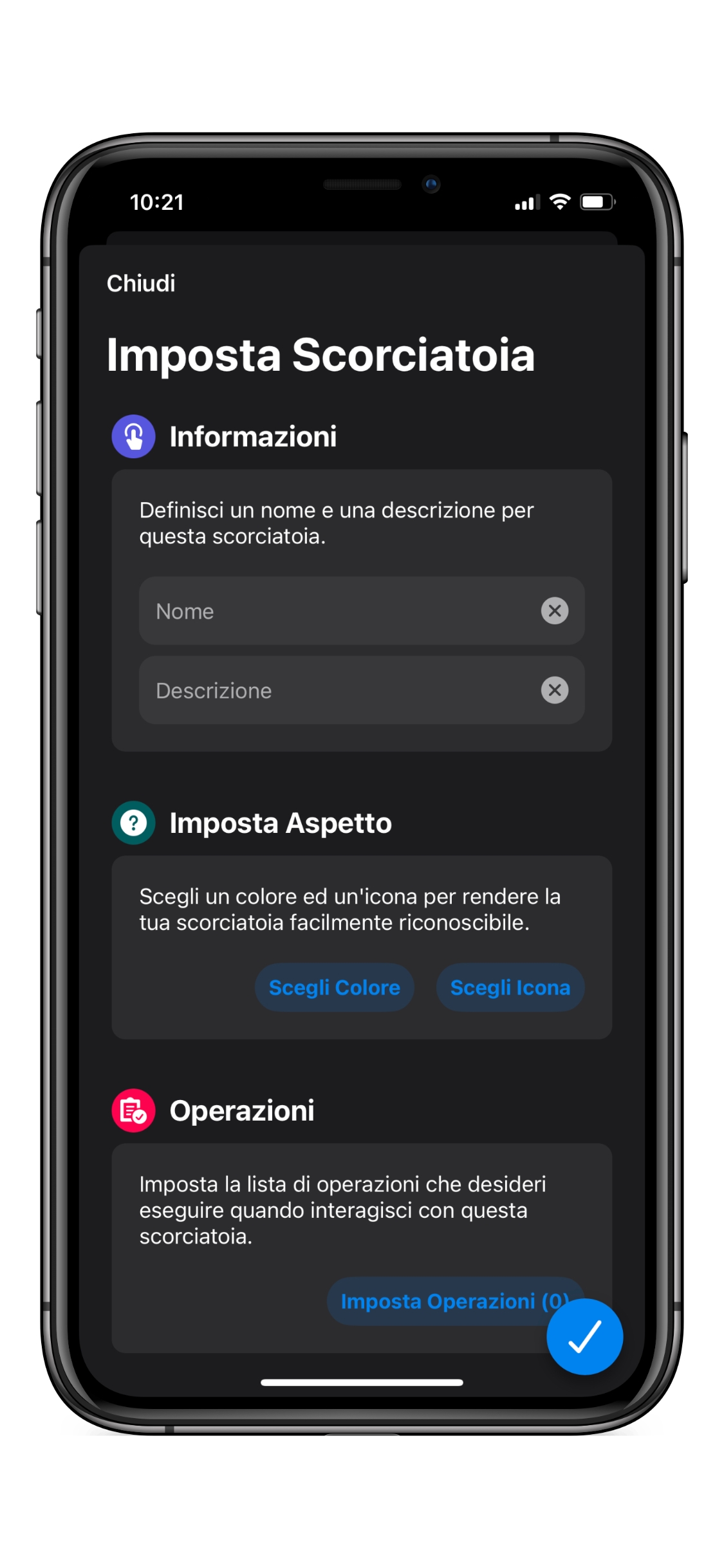 Per aggiungere una nuova Scorciatoia è sufficiente cliccare sul tasto + in basso a destra.