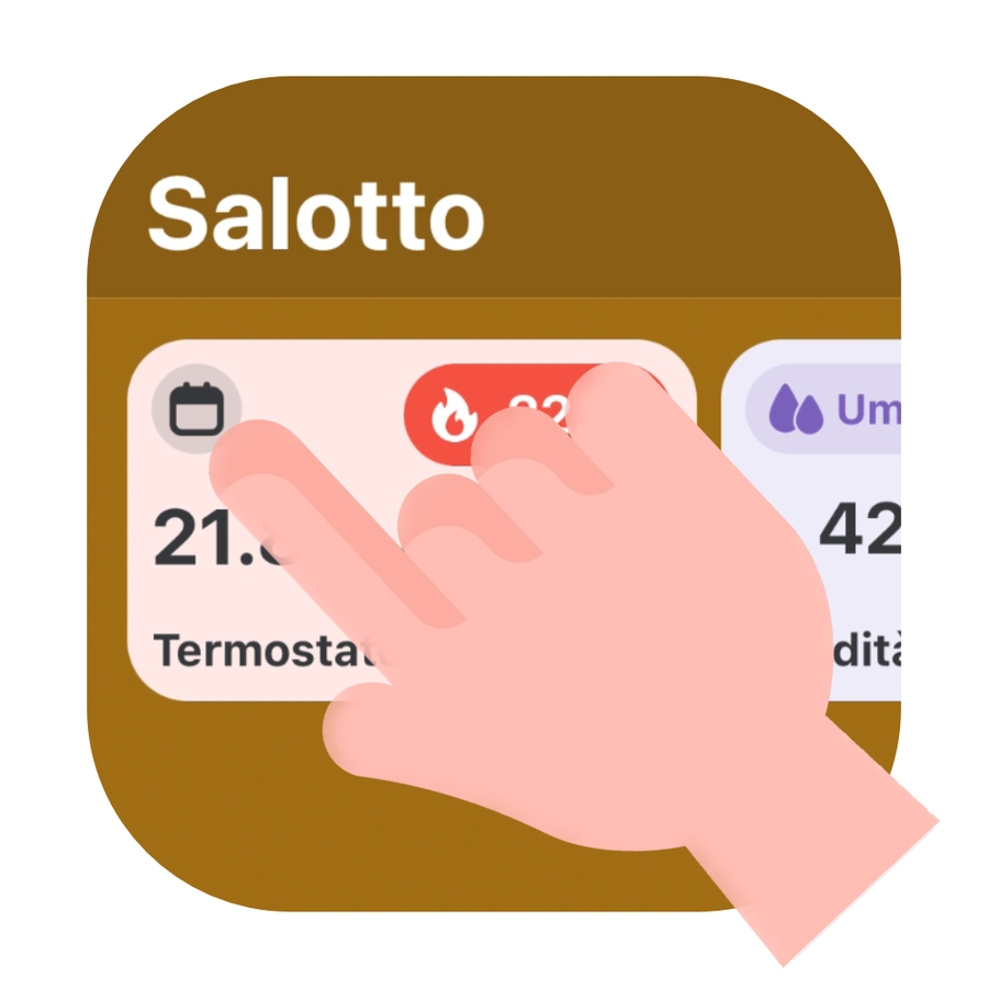 Potete inoltre accedere rapidamente al termostato premendo sul valore di temperatura presente sulle stanze/gruppi della schermata principale; anche in questo caso, in seguito ad una lunga pressione, verrà visualizzata la schermata di set rapido.