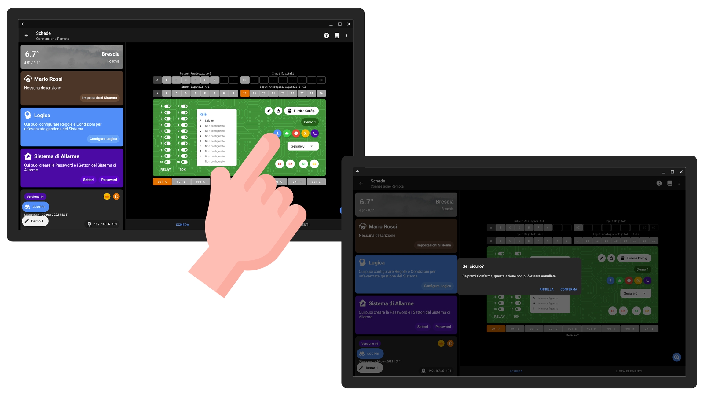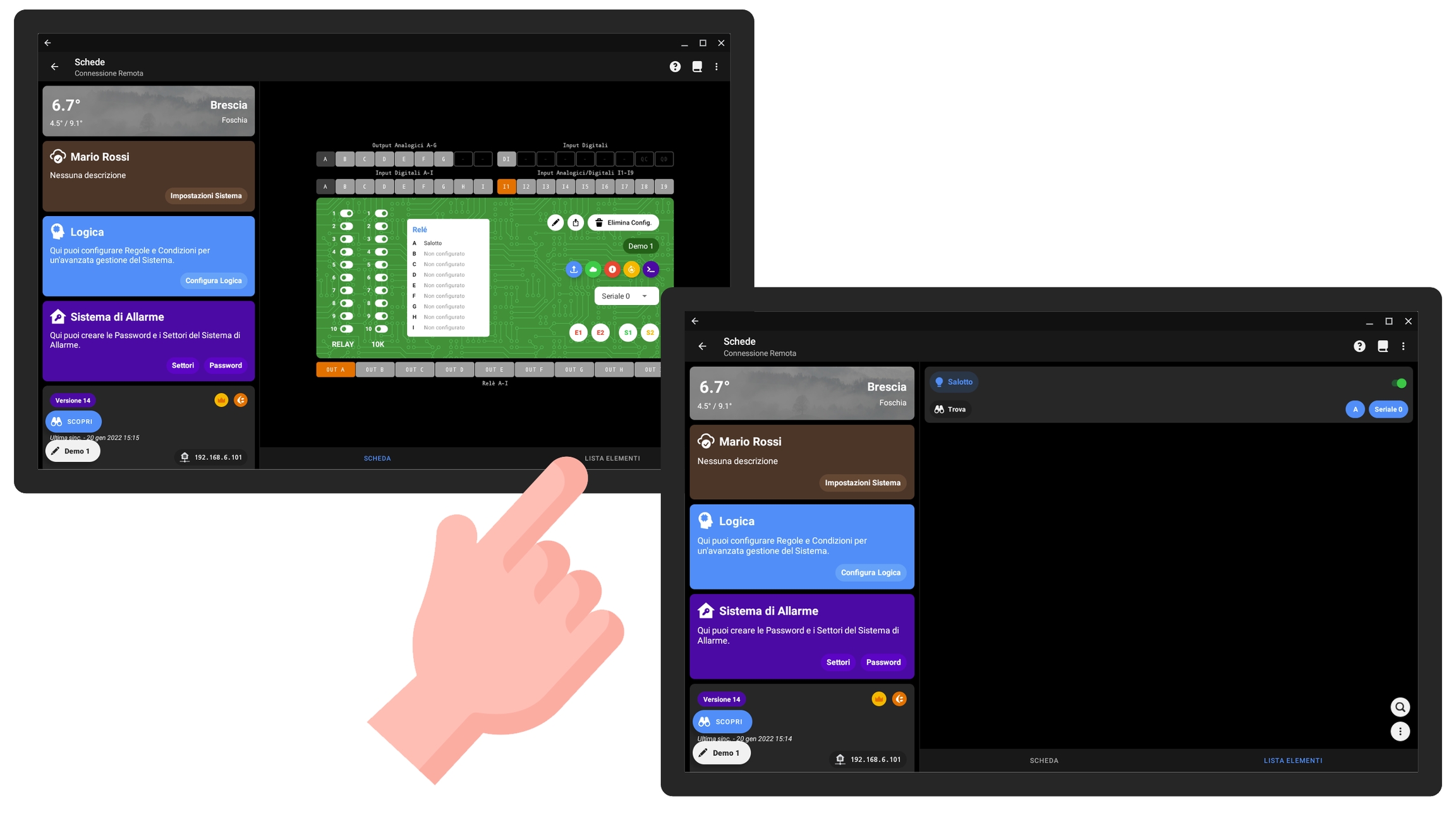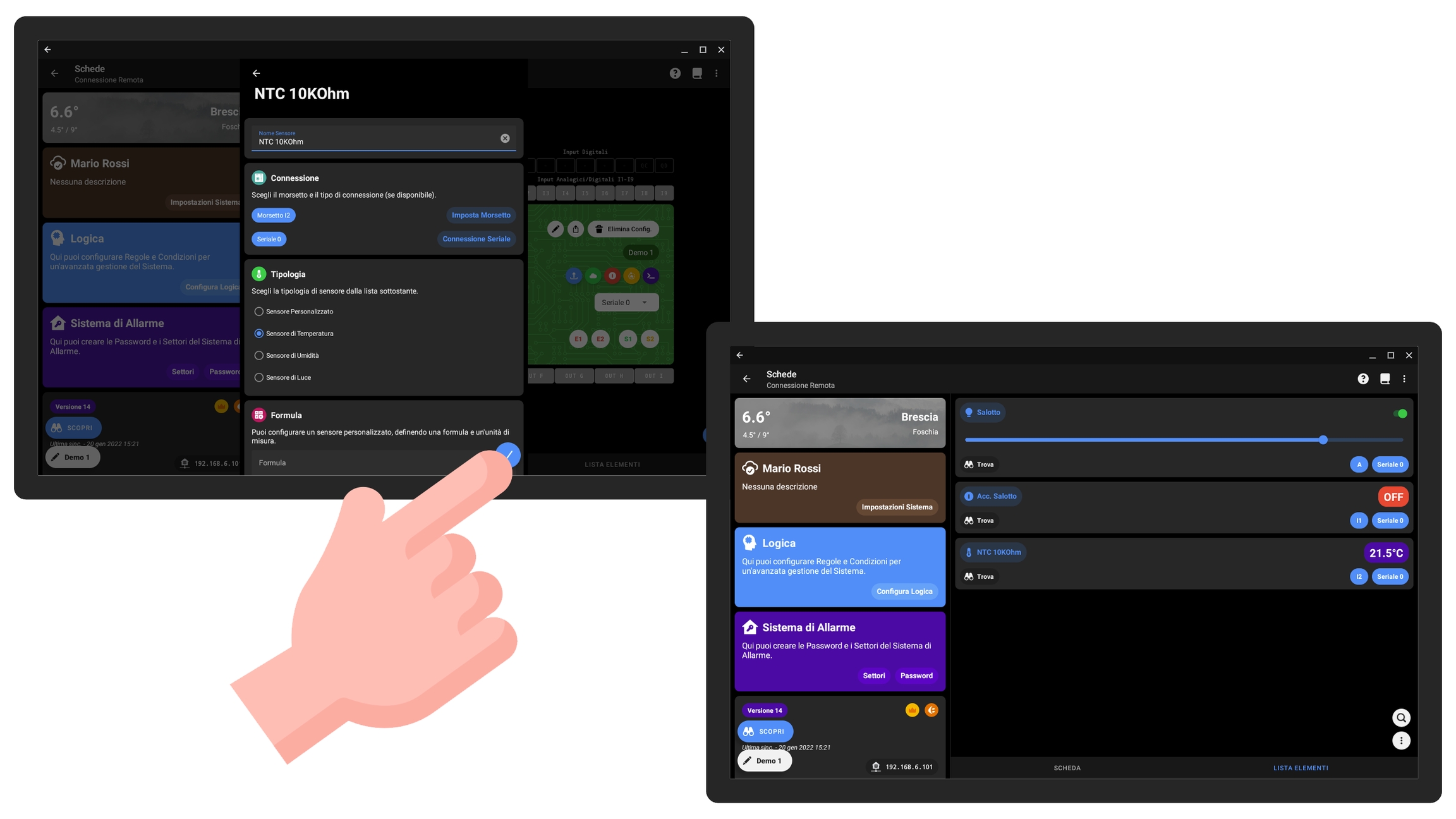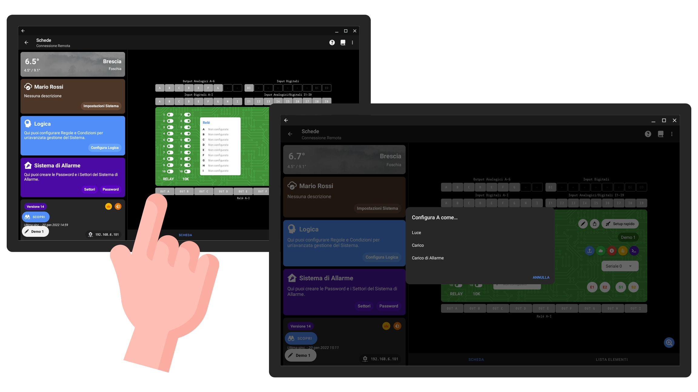 In questa sezione andremo ad elencare alcuni dei collegamenti più frequenti, mostrando sia la modalità di cablaggio che i passaggi per procedere con la configurazione dall'app.