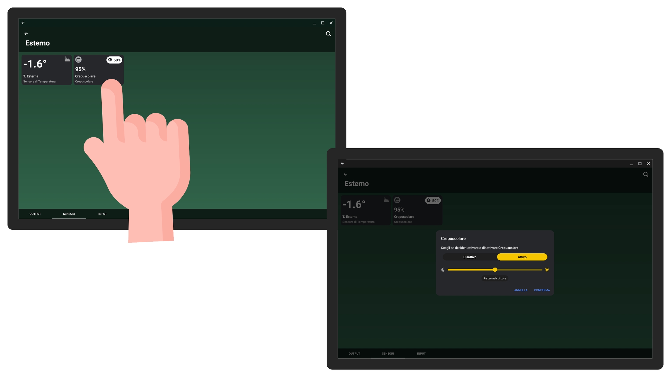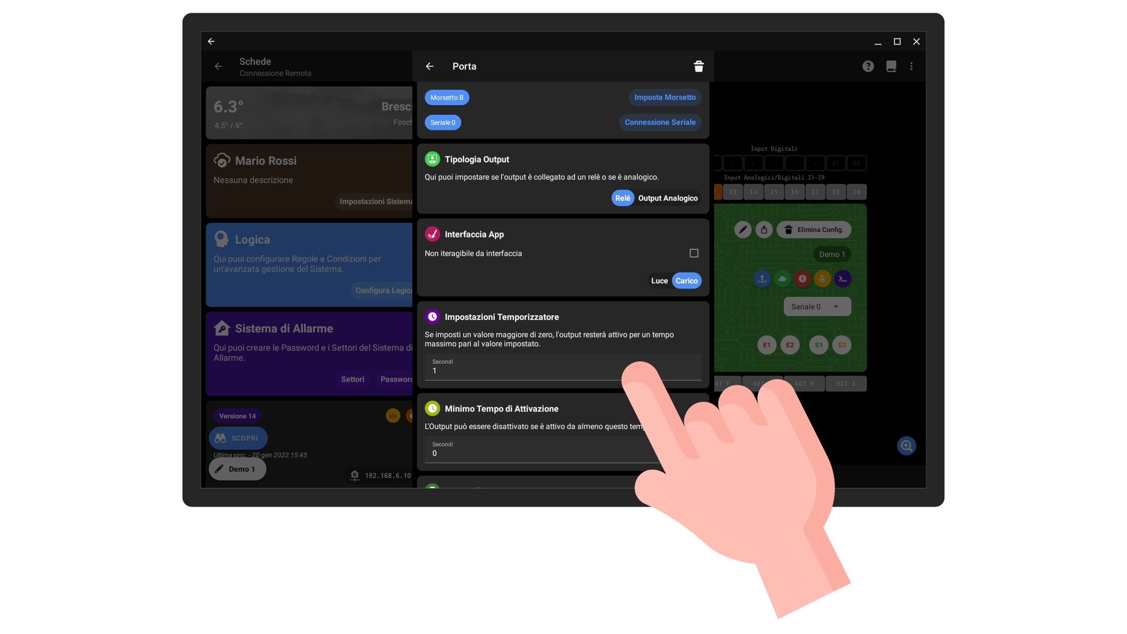 Non interagibile da interfaccia: permette di rendere l'output non interagibile dall'app utente, utile quando configurate carichi di cui volete mostrare lo stato, ma che l'utente non può attivare (es. elettrovalvole, comandi finestre, valvole irrigazione, ecc.).