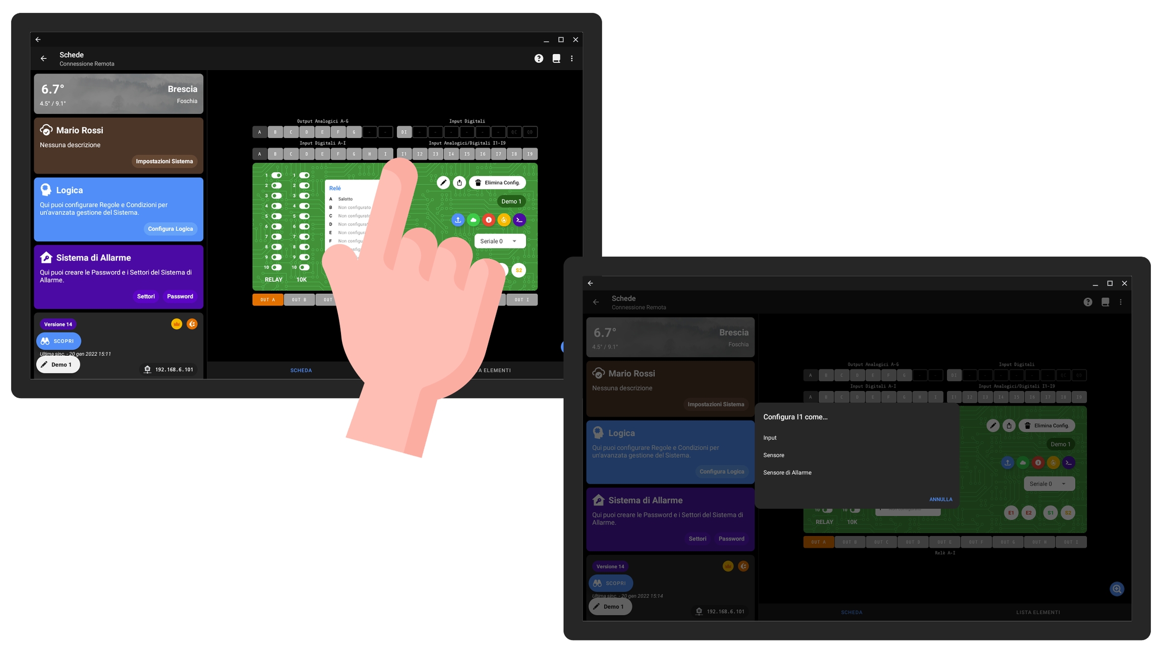 sono configurabili sia come ingressi analogici che digitali (la configurazione va fatta dall’applicazione dedicata).