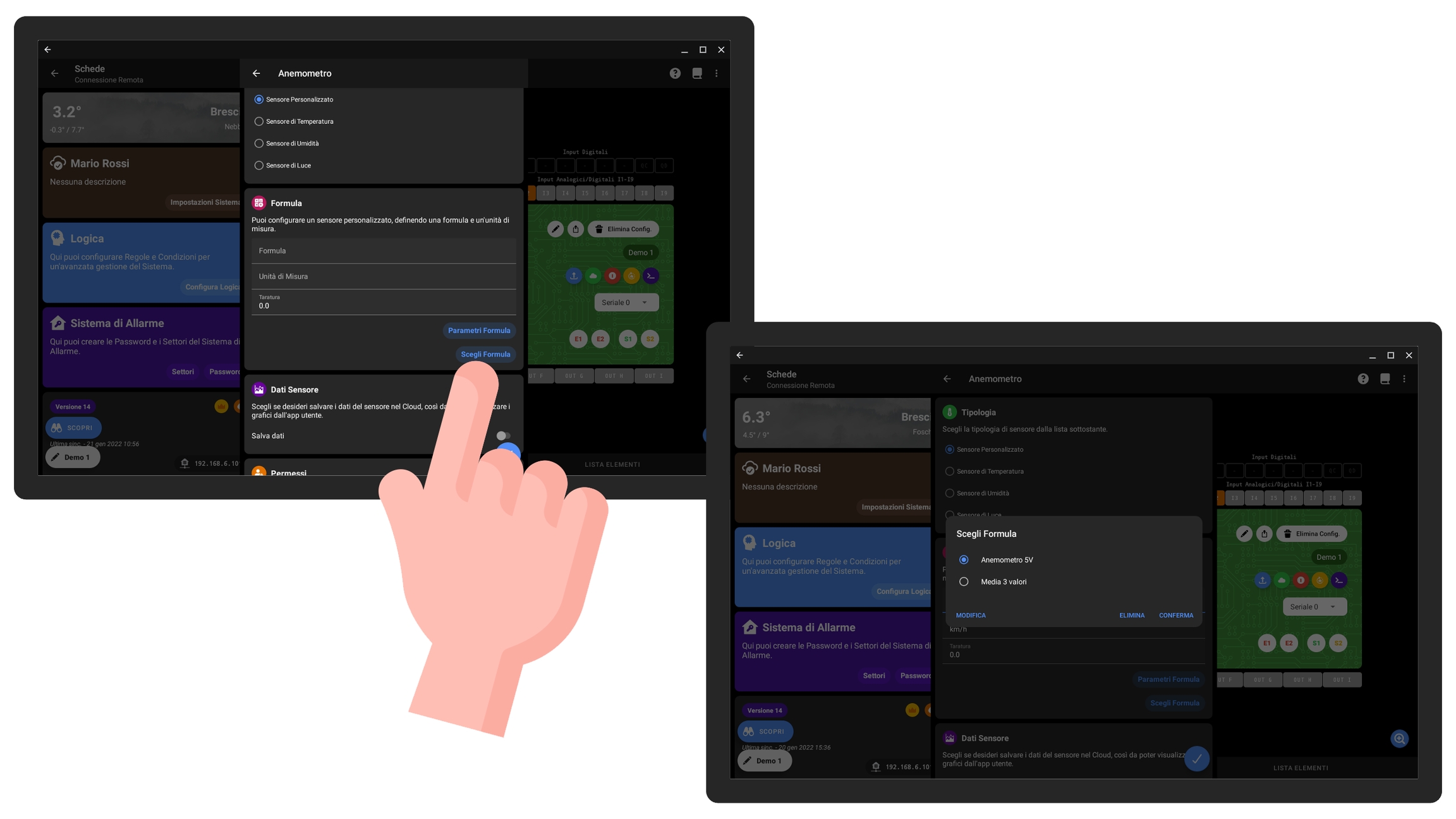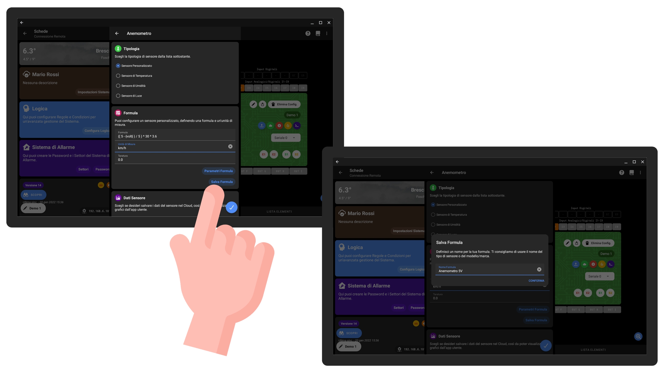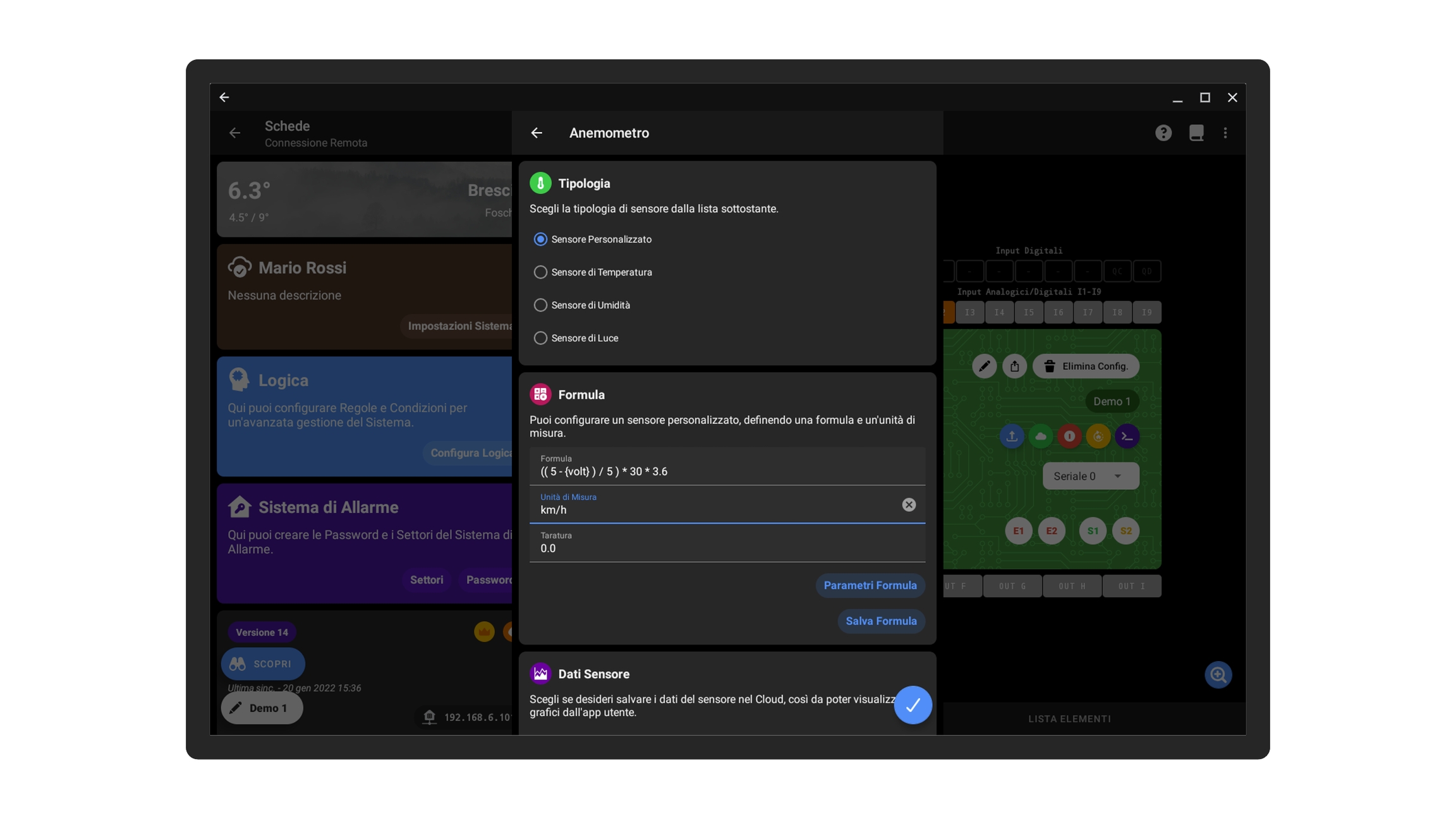 Quindi se dovete configurare altri sensori di quel tipo potete premere il pulsante Scegli Formula e scegliere una di quelle salvate.