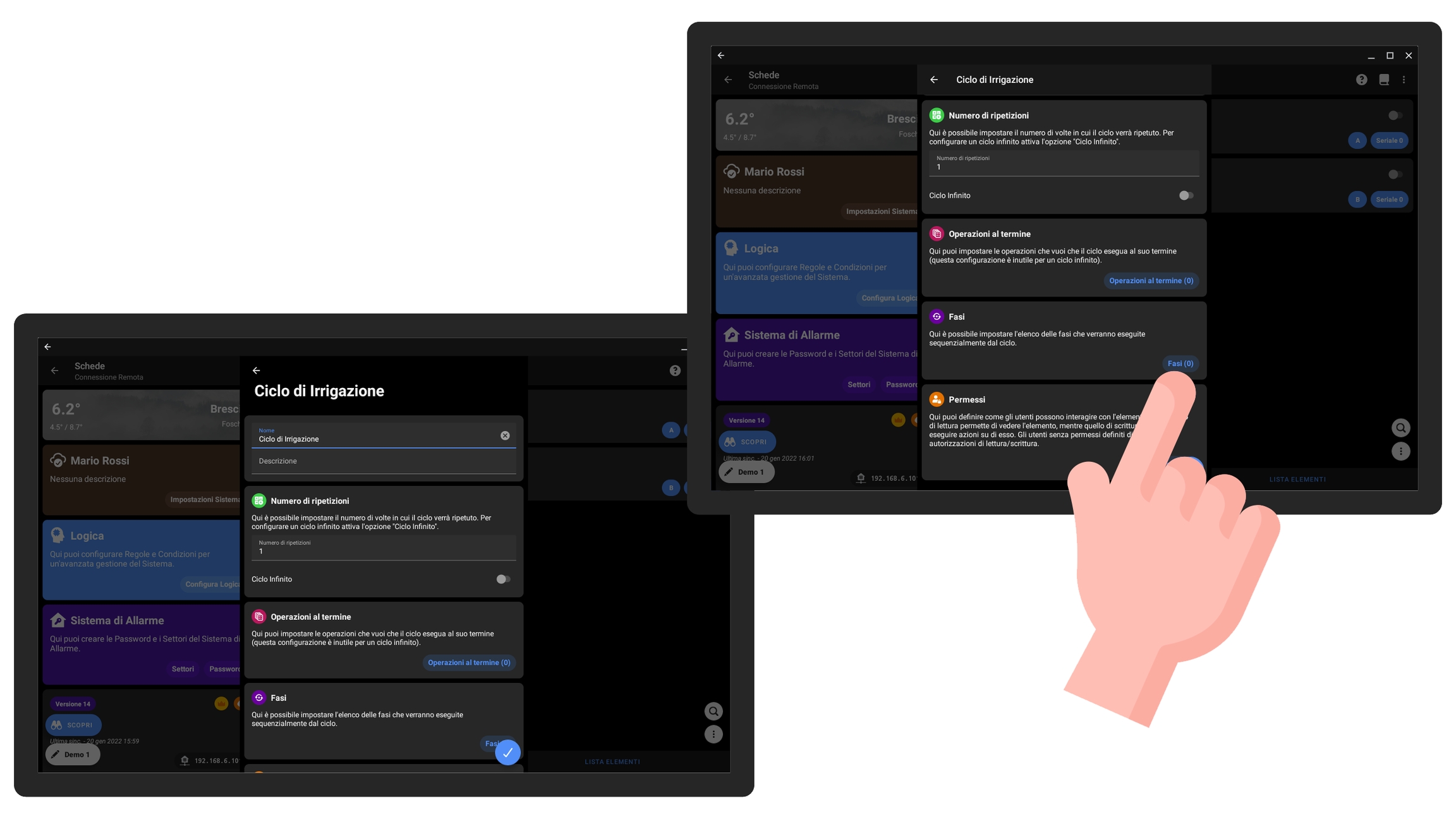 Una volta definito il ciclo potete creare il Sistema di Irrigazione, che presenta le seguenti proprietà :