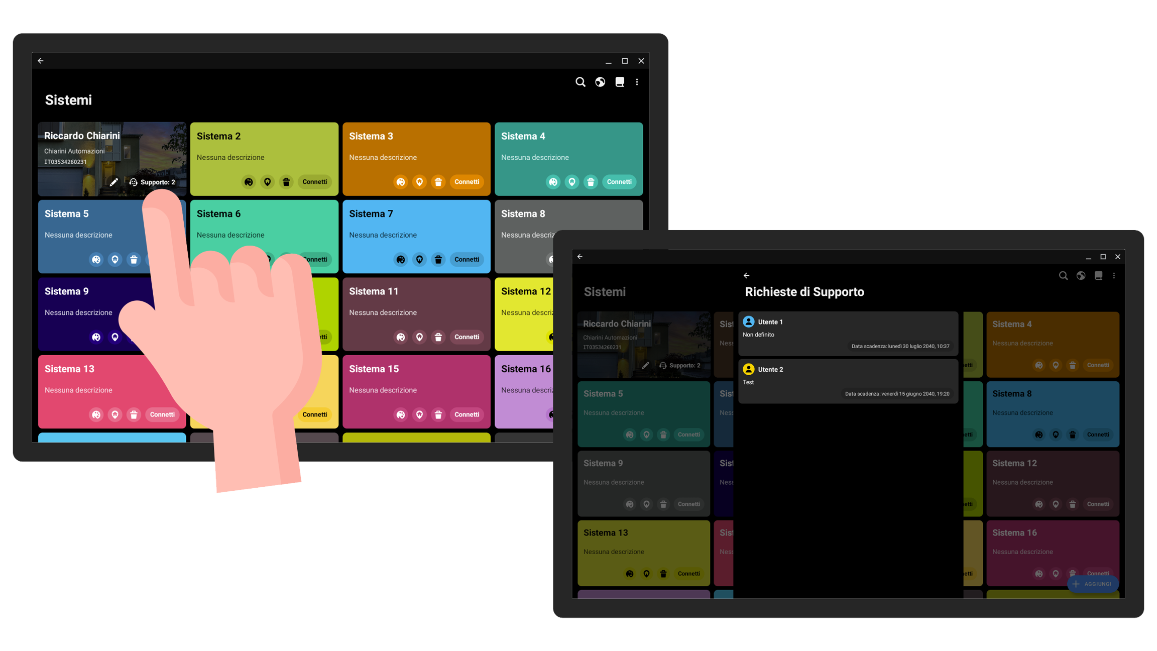 Per visualizzare le richieste di supporto attive cliccare su Supporto dalla schermata principale, quindi cliccare sulla richiesta per connettersi al Sistema.