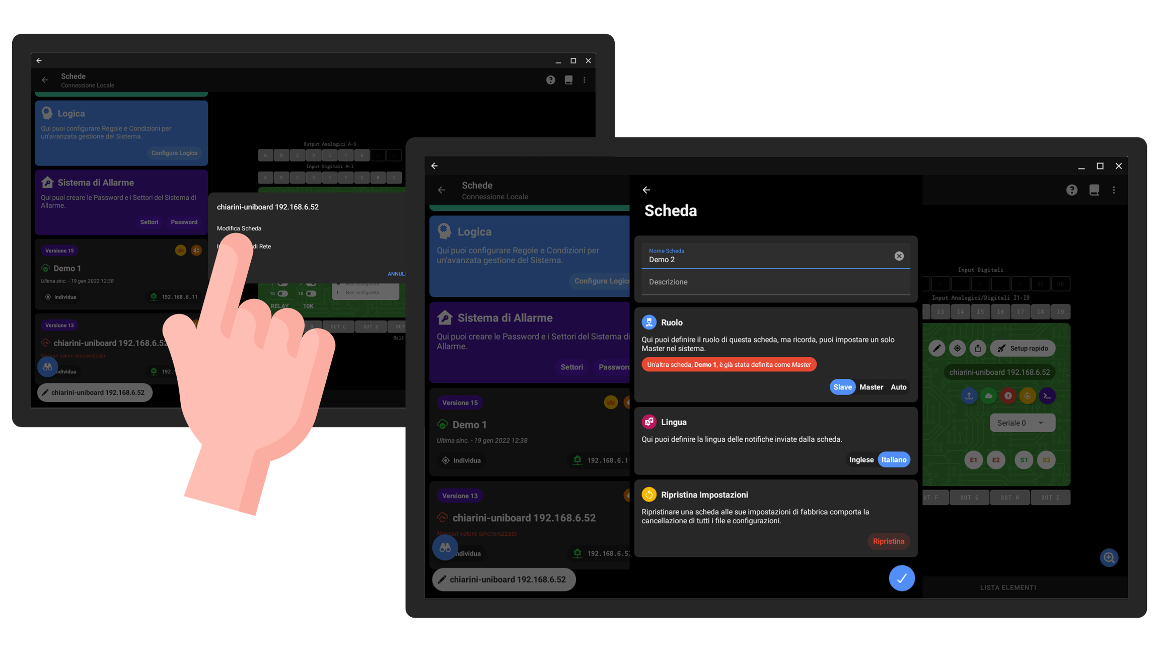 Le schede devono essere connesse alla medesima rete del dispositivo da cui si desidera effettuare la configurazione.
