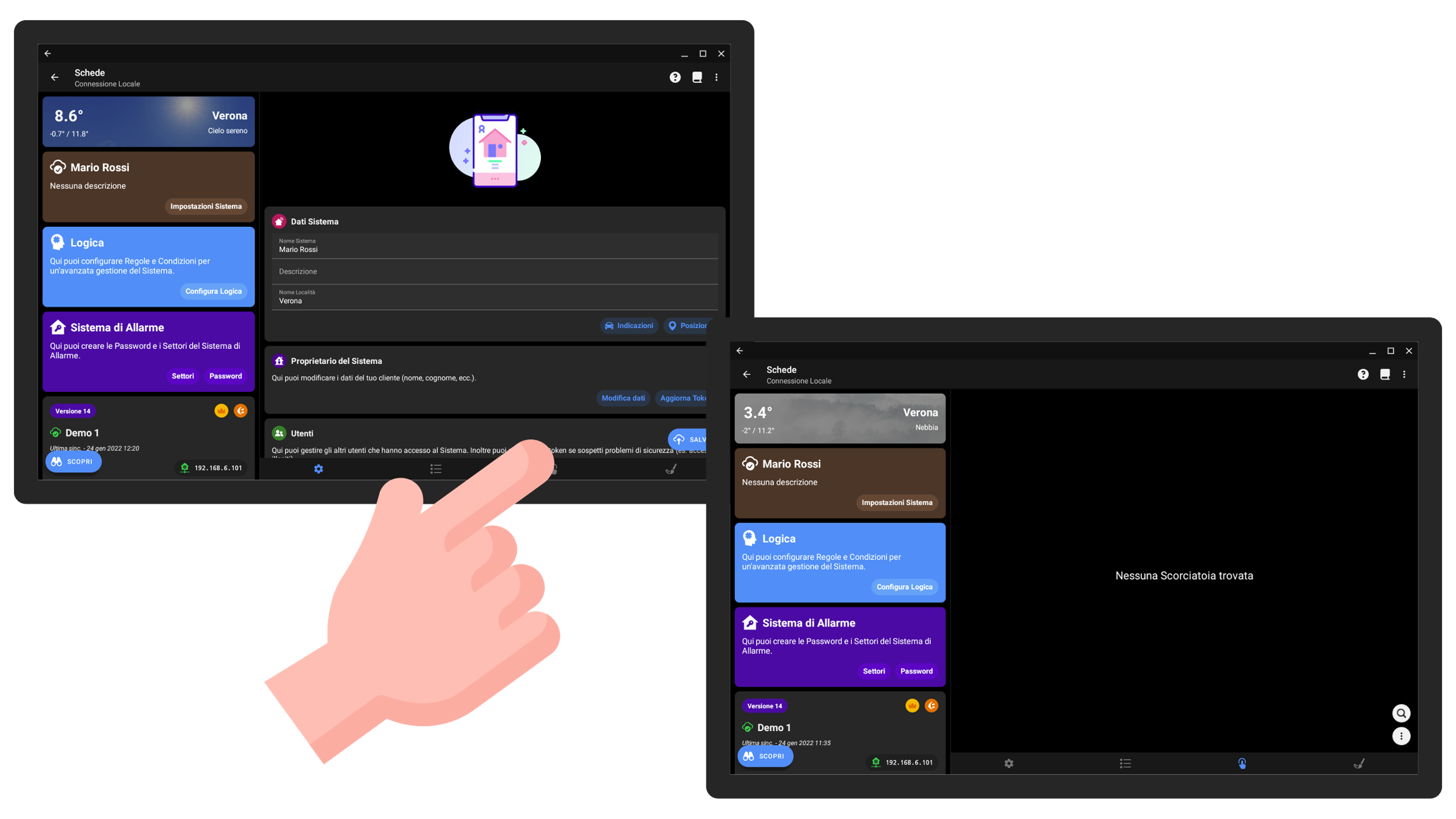 Le Scorciatoie sono la nostra interpretazione degli Scenari, che in un Sistema Domotico permettono di eseguire molteplici operazioni in seguito ad un'unica interazione.