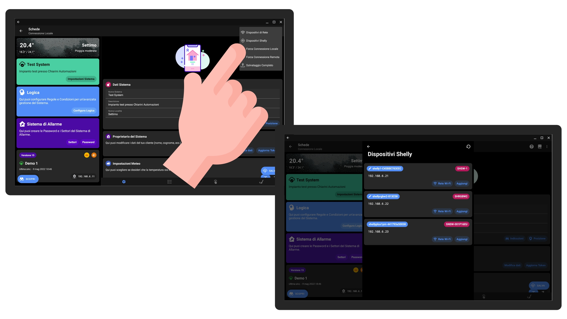 Affinché gli Shelly risultino individuabili è importante che siano stati connessi alla medesima rete da cui state effettuando la ricerca e che la connessione con il Sistema Domotico sia Locale.
